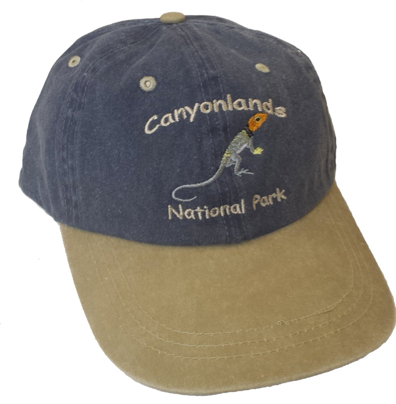 Discover the updated design of this navy hat featuring an iconic collared lizard and Canyonlands National Park embroidery. Made from 100% cotton, it offers ultimate comfort with an adjustable canvas strap. Add a hint of adventure to your style, perfect for outdoor enthusiasts and nature lovers. Let the iconic lizard be your companion on all adventures. Order this unique hat now and elevate your wardrobe!